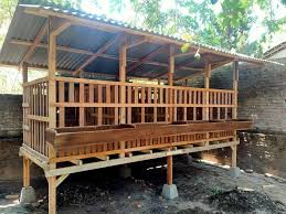 2. Kandang Semi-Permanen (Kayu Keras dan Pondasi Beton)